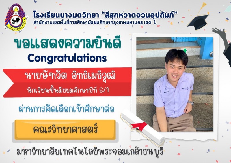 แสดงความยินดีกับนักเรียน ม.6 ที่ผ่านการคัดเลือกเข้าศึกษาต่อ